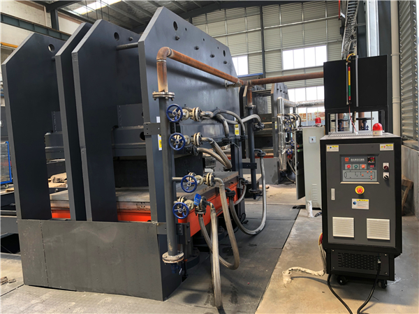 平板機器在工作過程中,為了增加產(chǎn)量,往往一臺機器上有多層壓板,每一快壓板上都開了流道,供模溫機的導(dǎo)熱油循環(huán),所以,一般平板加熱的模溫機,循環(huán)泵的流量要選大一些的,加熱功率也都會比較大,有的甚至要配有機熱載體爐。